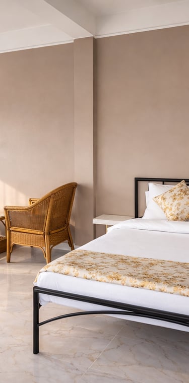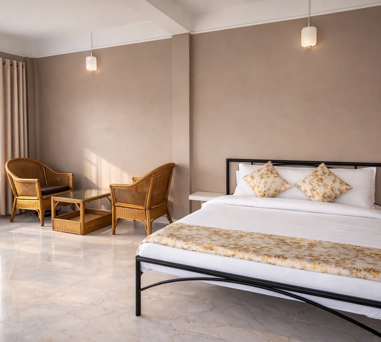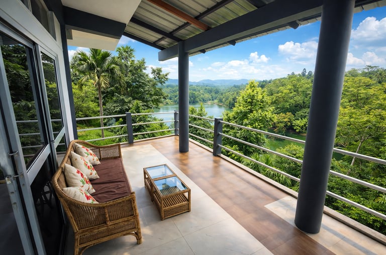 Cozy room with private balcony, free breakfast, and serene morning lake views — perfect for couples or solo travelers.
