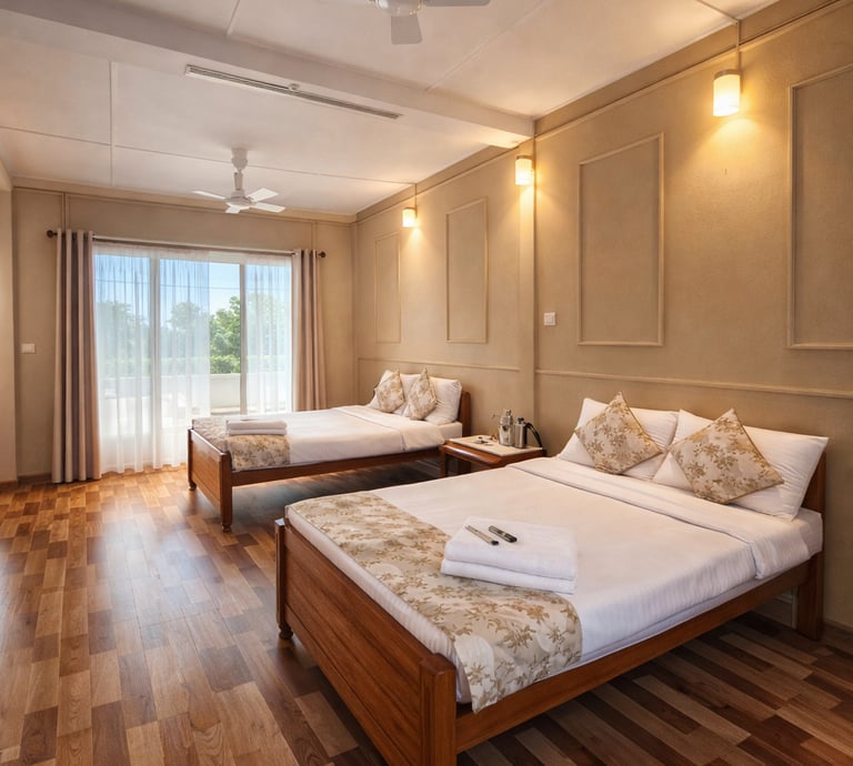 Double Bedroom with one bathroom attached with a private lakeview facing balcony perfect for a family travelling with a furry friend with free breakfast and wifi